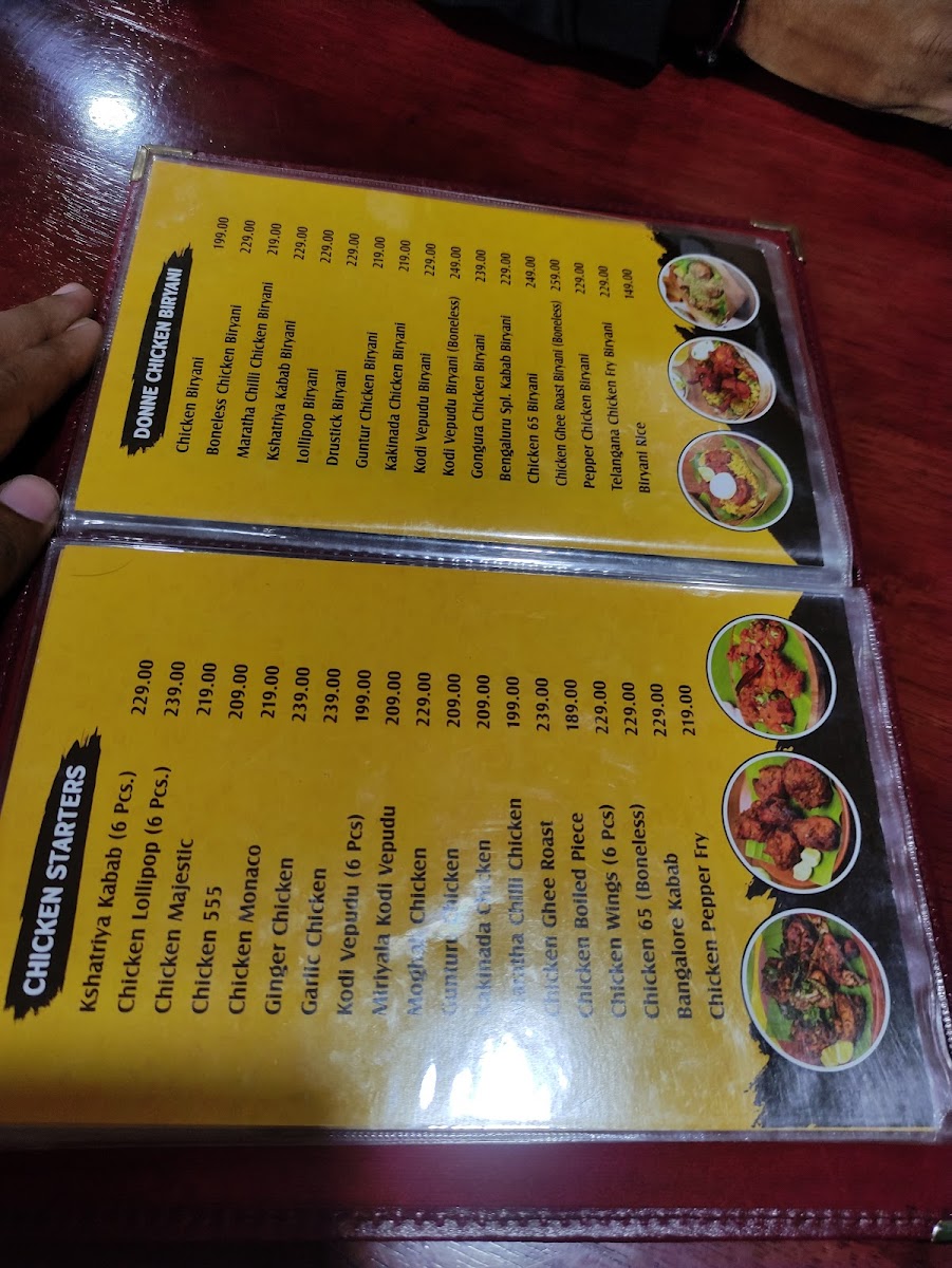 The menu features an impressive array of options, from the robust Donne Chicken Biryani to tantalizing seafood starters like Prawns Fry and Kodi Vepudu. Diners rave about the Bangalore Special and heartily endorse the Guntur and Kakinada Biryanis for their depth of flavor. Patrons appreciate the welcoming atmosphere, complemented by a warm smile from the owner.